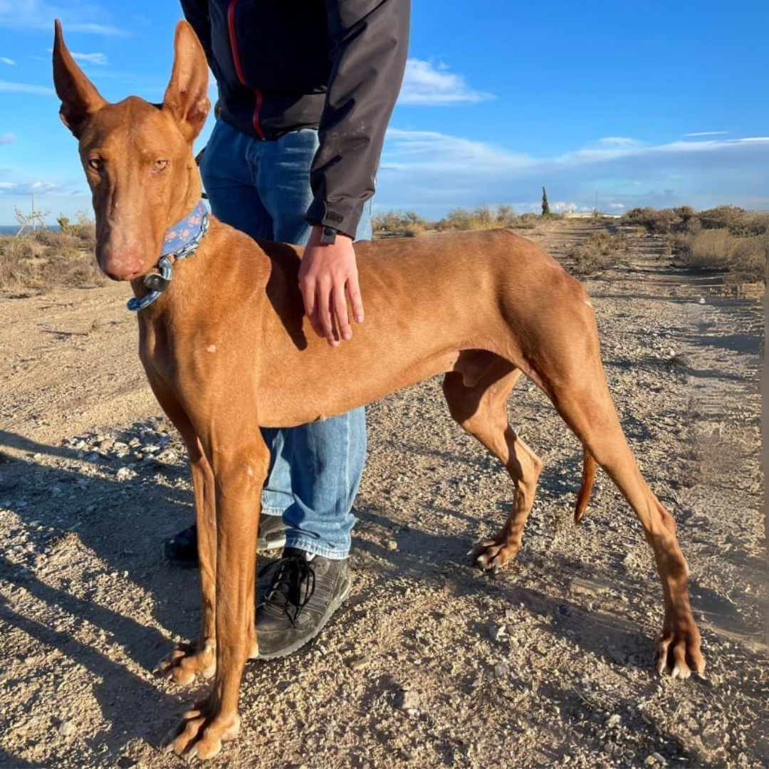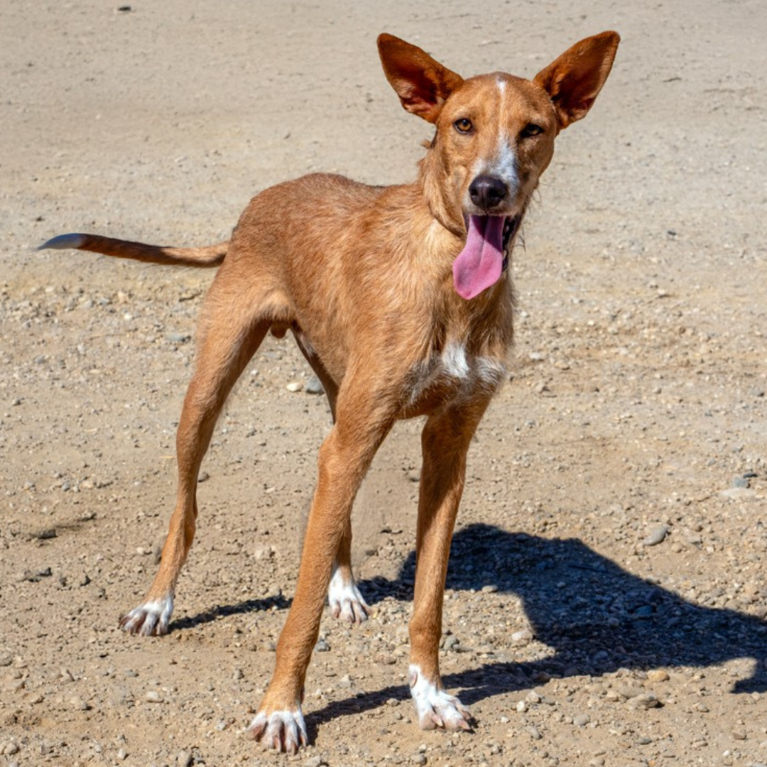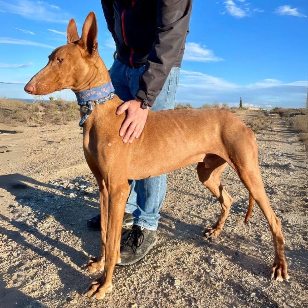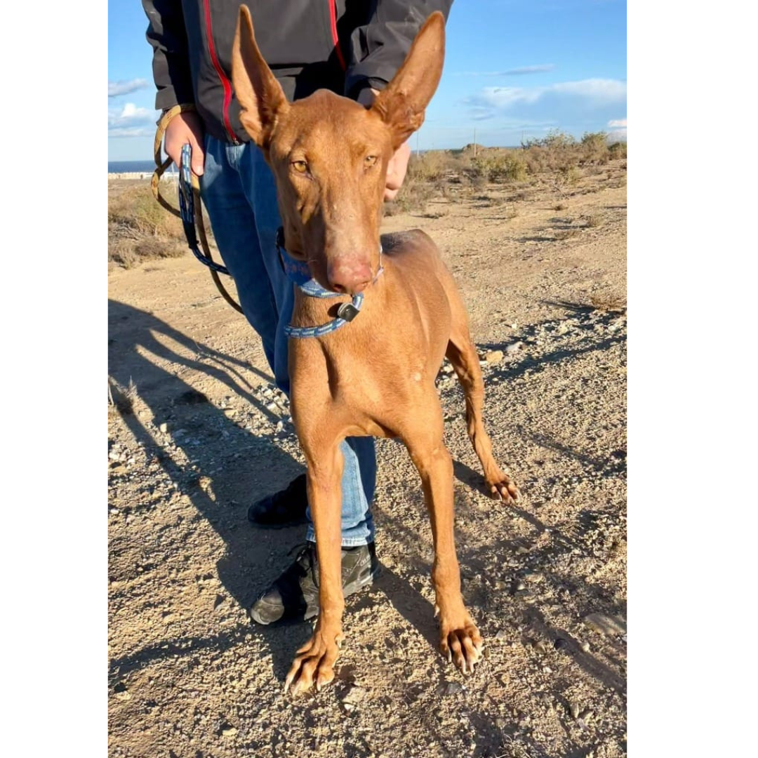 Teide è un magnifico Podenco Andaluso dal fisico statuario. Adora fare lunghe passeggiate nella campagna locale ed è molto bravo al guinzaglio. Può vivere con altri cani (in questo momento condivide la cuccia con una femmina) ed essere anche un buon figlio unico a quattro zampe. Teide è stato trovato vagante e per questo ha dovuto per molto tempo procurarsi il cibo e l’acqua da solo. Per questo motivo è necessario prestare un po’ di attenzione al momento dei pasti: in rifugio utilizzano una ciotola “lenta”, che lo aiuta molto. Ama molto correre e giocare, ma anche rilassarsi al sole, tutte caratteristiche che lo rendono un ottimo compagno di vita.