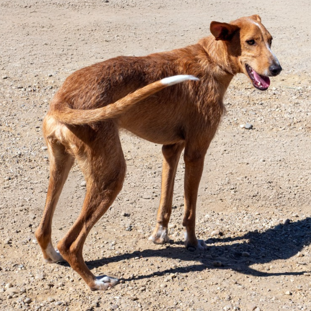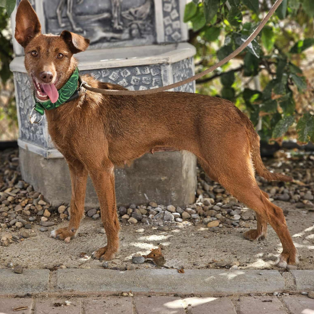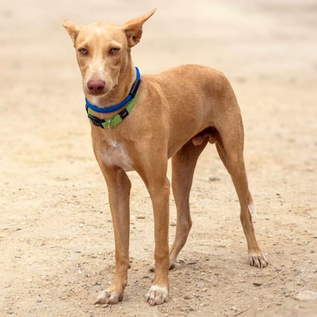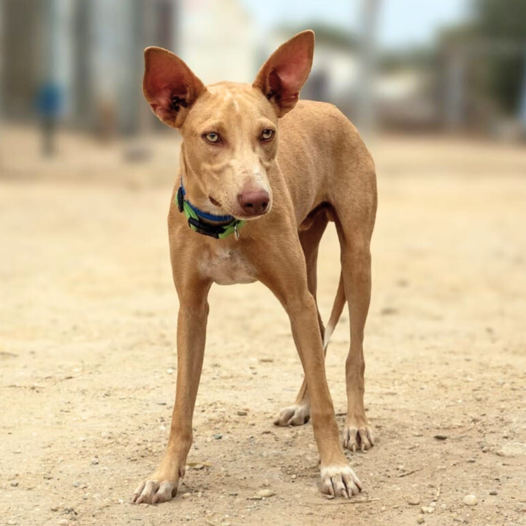 Teide è un magnifico Podenco Andaluso dal fisico statuario. Adora fare lunghe passeggiate nella campagna locale ed è molto bravo al guinzaglio. Può vivere con altri cani (in questo momento condivide la cuccia con una femmina) ed essere anche un buon figlio unico a quattro zampe. Teide è stato trovato vagante e per questo ha dovuto per molto tempo procurarsi il cibo e l’acqua da solo. Per questo motivo è necessario prestare un po’ di attenzione al momento dei pasti: in rifugio utilizzano una ciotola “lenta”, che lo aiuta molto. Ama molto correre e giocare, ma anche rilassarsi al sole, tutte caratteristiche che lo rendono un ottimo compagno di vita.