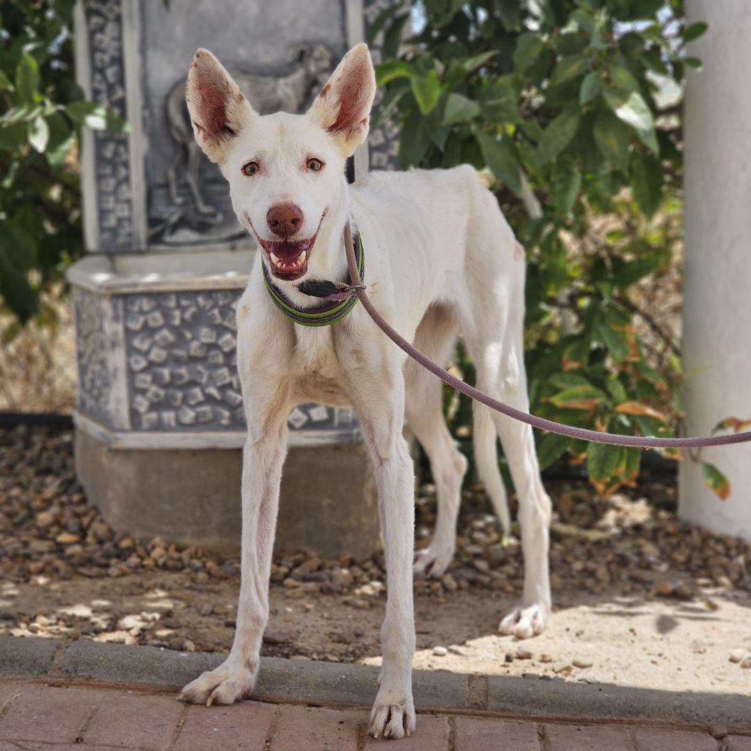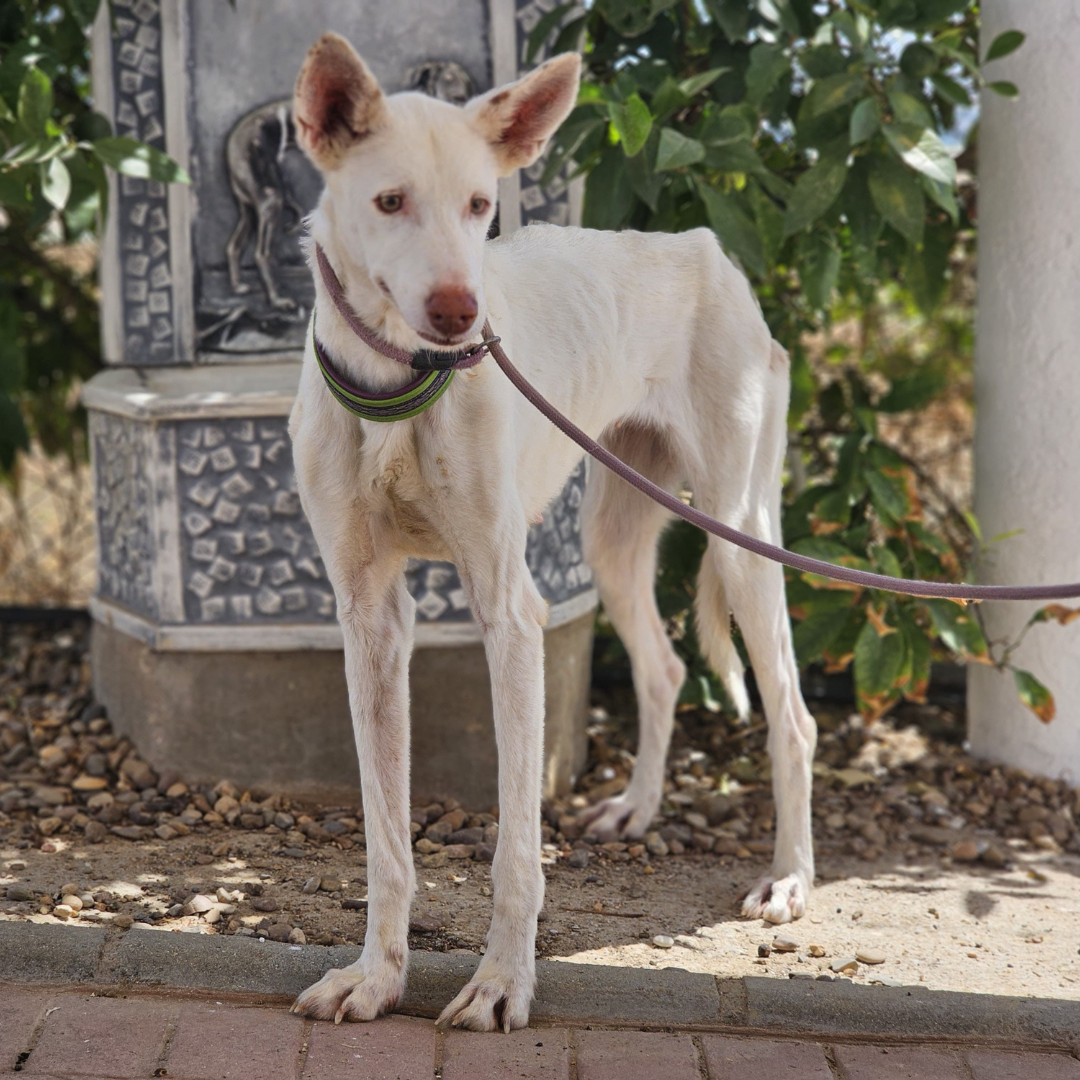 Crystal non ha vissuto molte esperienze positive nei suoi primi anni. Per questo motivo, inizialmente era timida e riservata con le persone. Ma ora sta ricevendo l’affetto che le è mancato così tanto. Crystal apprezza ogni carezza che riceve. Questa Podenca intelligente e curiosa ama annusare, annusare e giocare. Non vede l’ora di entrare finalmente a far parte di una famiglia in cui vivono già altri cani o gatti.