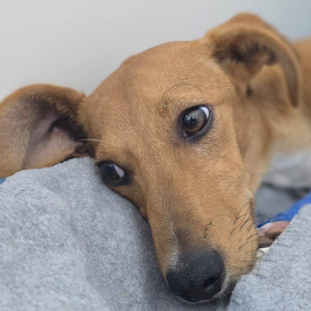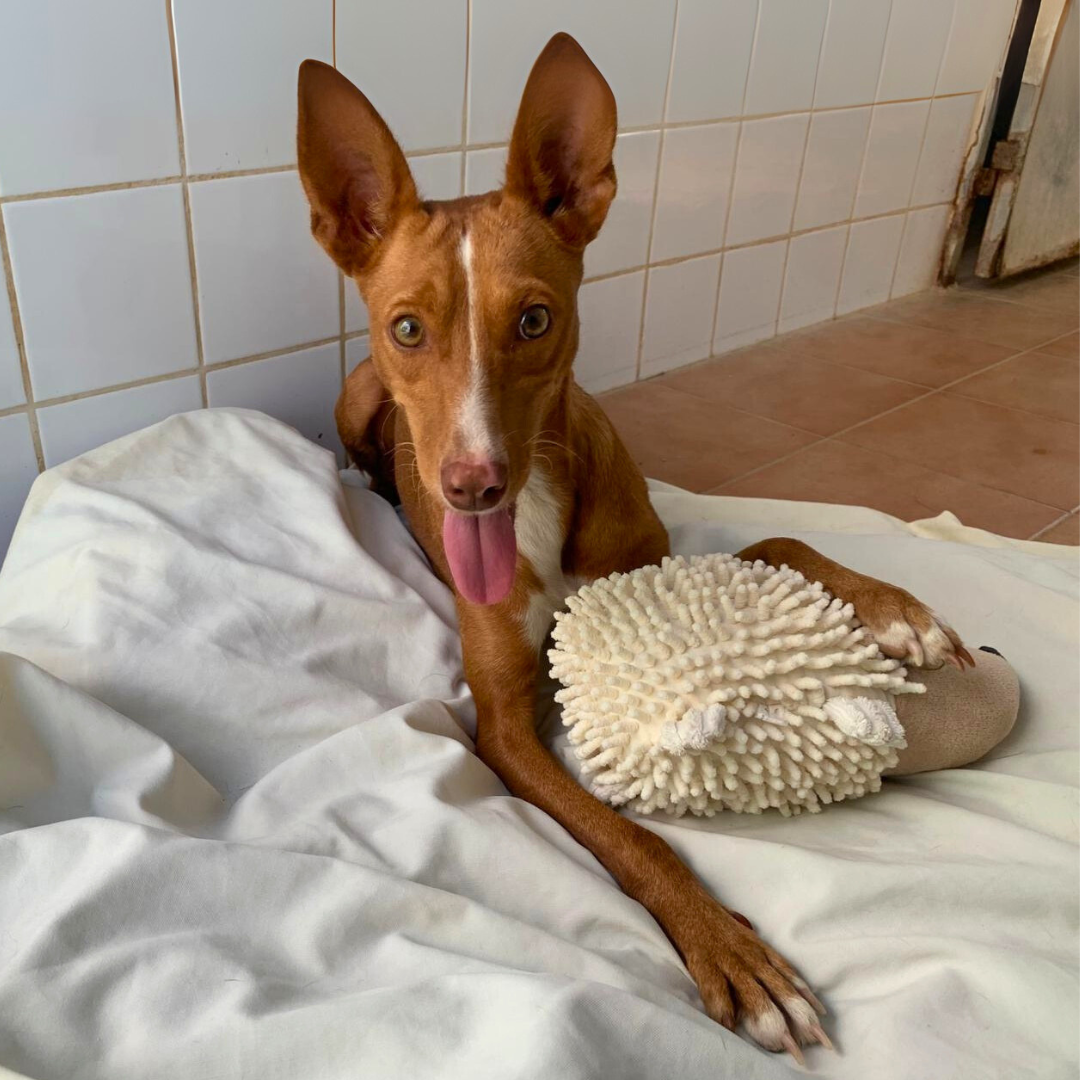 Gaspar è stato salvato dalle volontarie del rifugio dalla Perrera di Siviglia nella quale si trovava in una bruttissima situazione. Nonostante sia molto giovane si muove in modo strano. E’ stato portato dal veterinario e attualmente sta affrontando sedute di fisioterapia quotidiane. E’ un Podenco di taglia piccola, che ama semplicemente avere qualcuno accanto che lo coccoli. E’ arrivato in rifugio timido e impaurito, ma piano piano sta capendo di essere finalmente al sicuro con qualcuno che si prende cura di lui. Il suo cuore ha iniziato a brillare dolcemente, sentendosi accolto, compreso, grato.