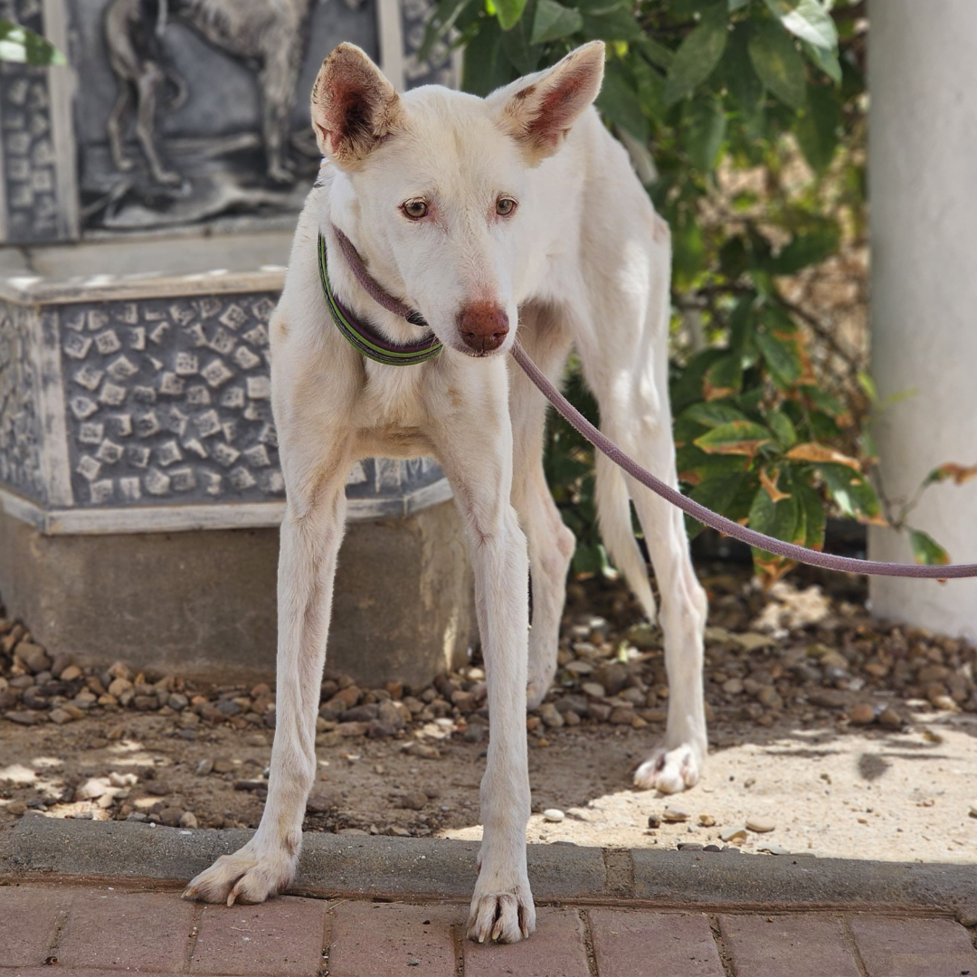 Cascada è un’incantevole Podenca Andalusa dal carattere eccezionalmente affettuoso. È socievole con gli altri cani, molto orientata alle persone e incredibilmente affettuosa. La sua intelligenza e curiosità la rendono una compagna attenta che ama imparare e scoprire il mondo con gioia. Nonostatne sia stata salvata da una situazione terribile con altri cinque Podenco, Cascada è amichevole, fiduciosa e coccolona. Gode appieno ogni carezza. È brava in gruppo, evita i conflitti e colpisce per la sua indole allegra ed equilibrata. Chiunque le dia una casa, troverà un amico fedele per la vita.