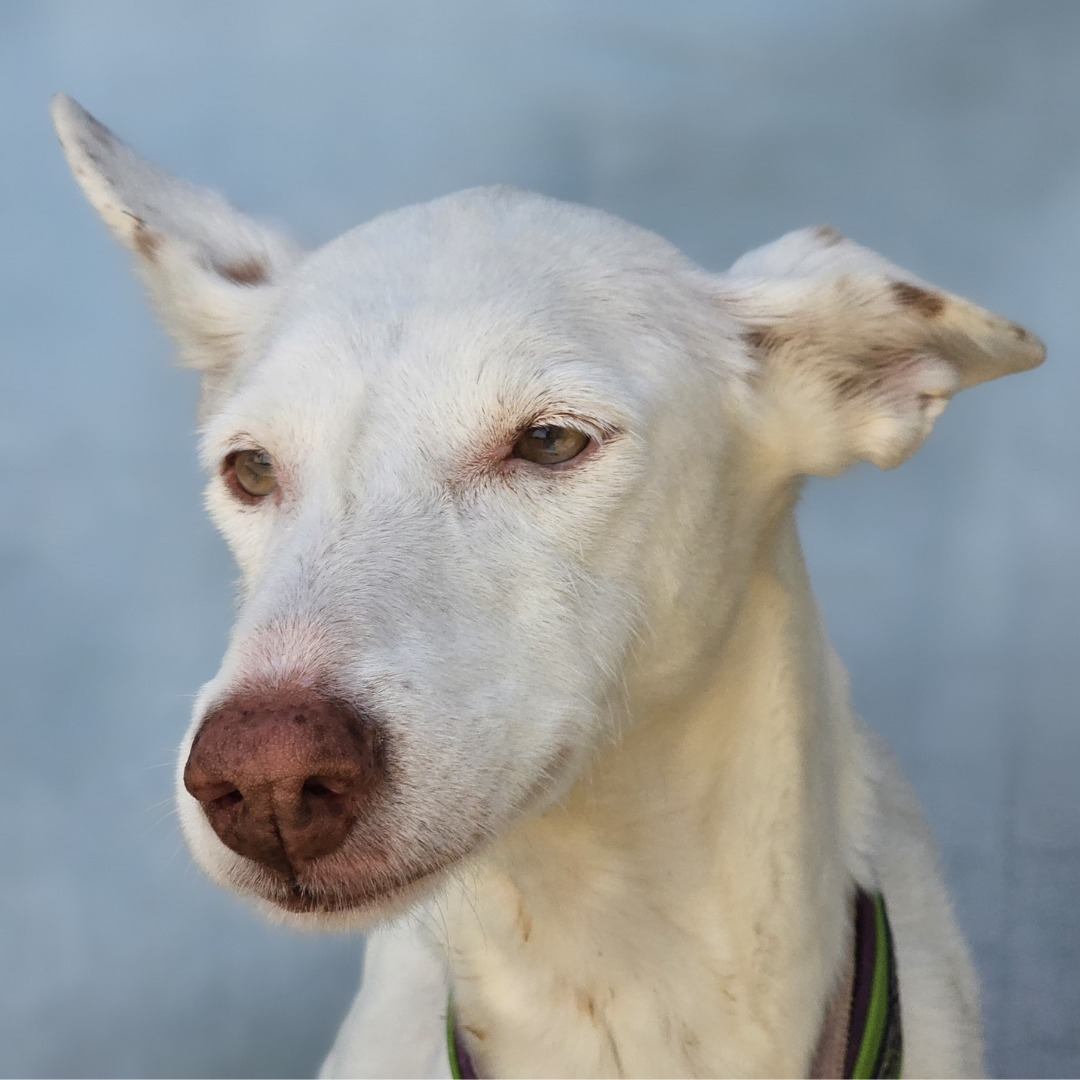 Sparrow è stato sequestrato dalla polizia perchè era detenuto in condizioni considerate “incompatibili con la vita”. È arrivato in rifugio a giugno 2022 in condizioni disastrose, magrissimo, le orecchie mangiate dai parassiti e marchiato dal cacciatore sul petto.