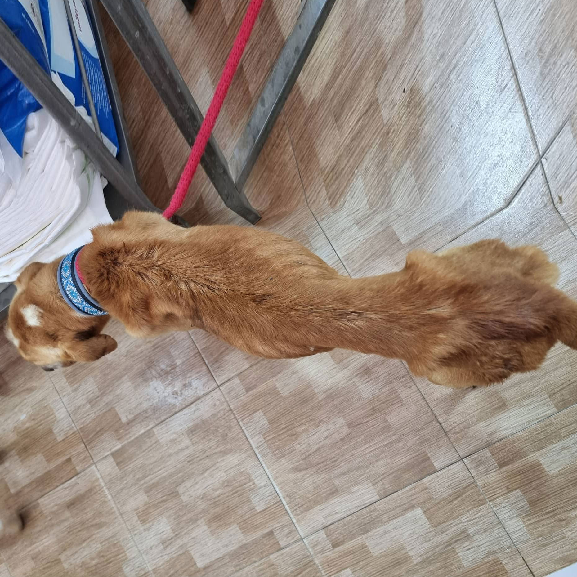Carpanta è stato salvato insieme ad Otilio da una situazione infernale. Detenuto in un terreno insieme a molti altri cani, alcuni già morti lasciati lì, altri in fin di vita per fame e mancanza di acqua.