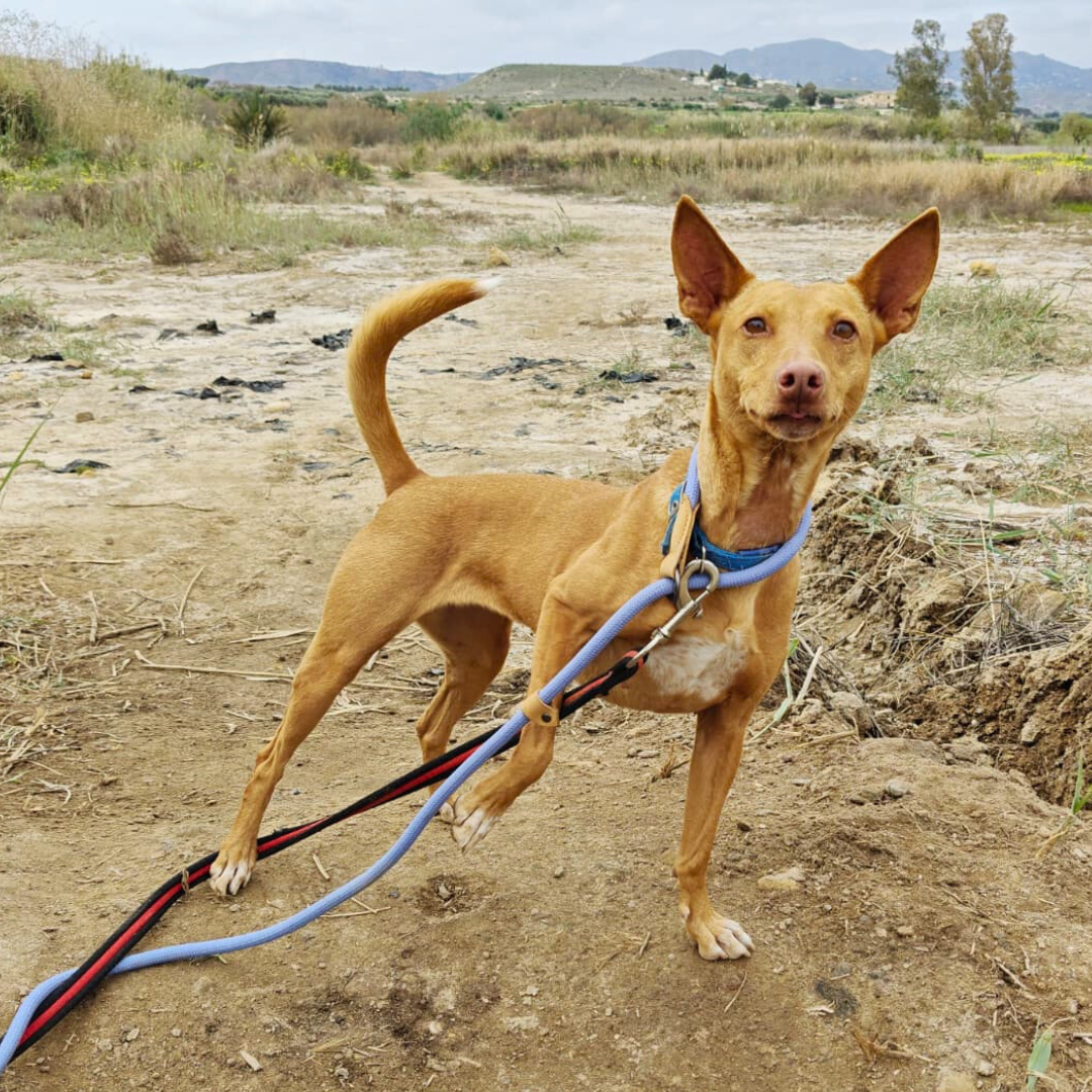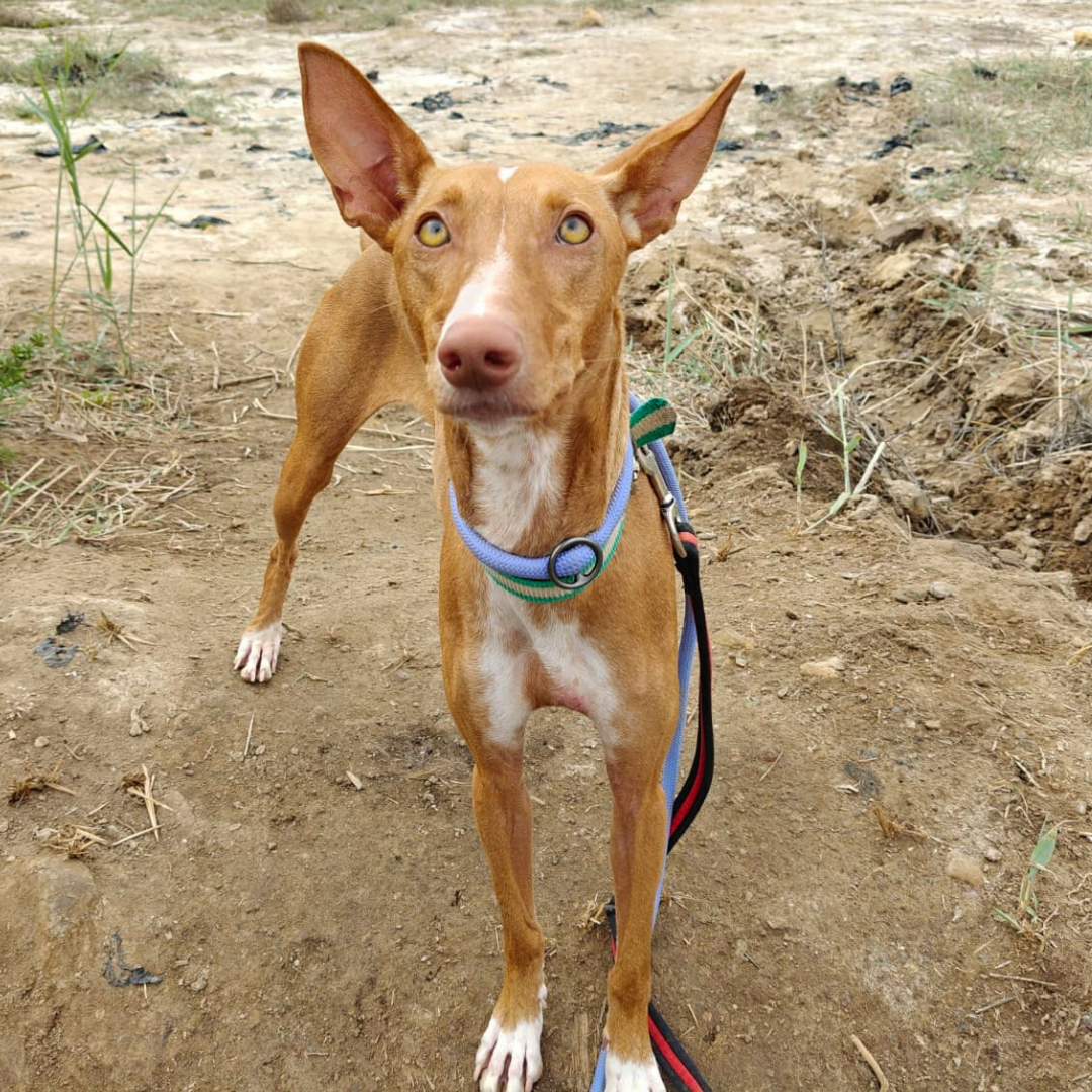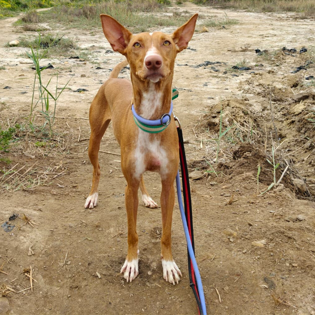 Estrella è una giovane Podenca trovata per strada, una cagnolina solare e piena di energia. Simpatica, vivace e molto socievole, adora giocare e stare in compagnia. Va d’accordo con tutti, cammina bene al guinzaglio e viaggia tranquilla in macchina.