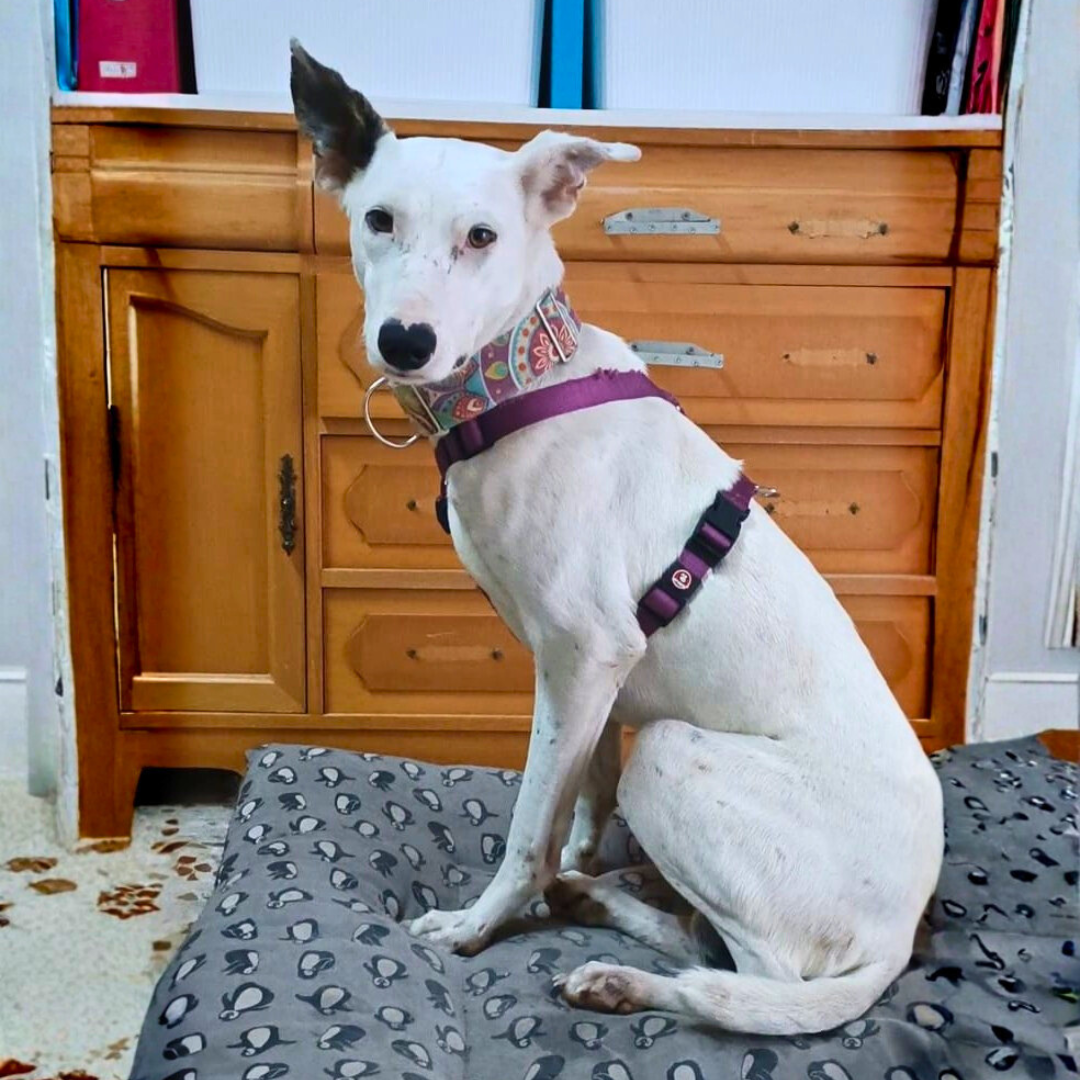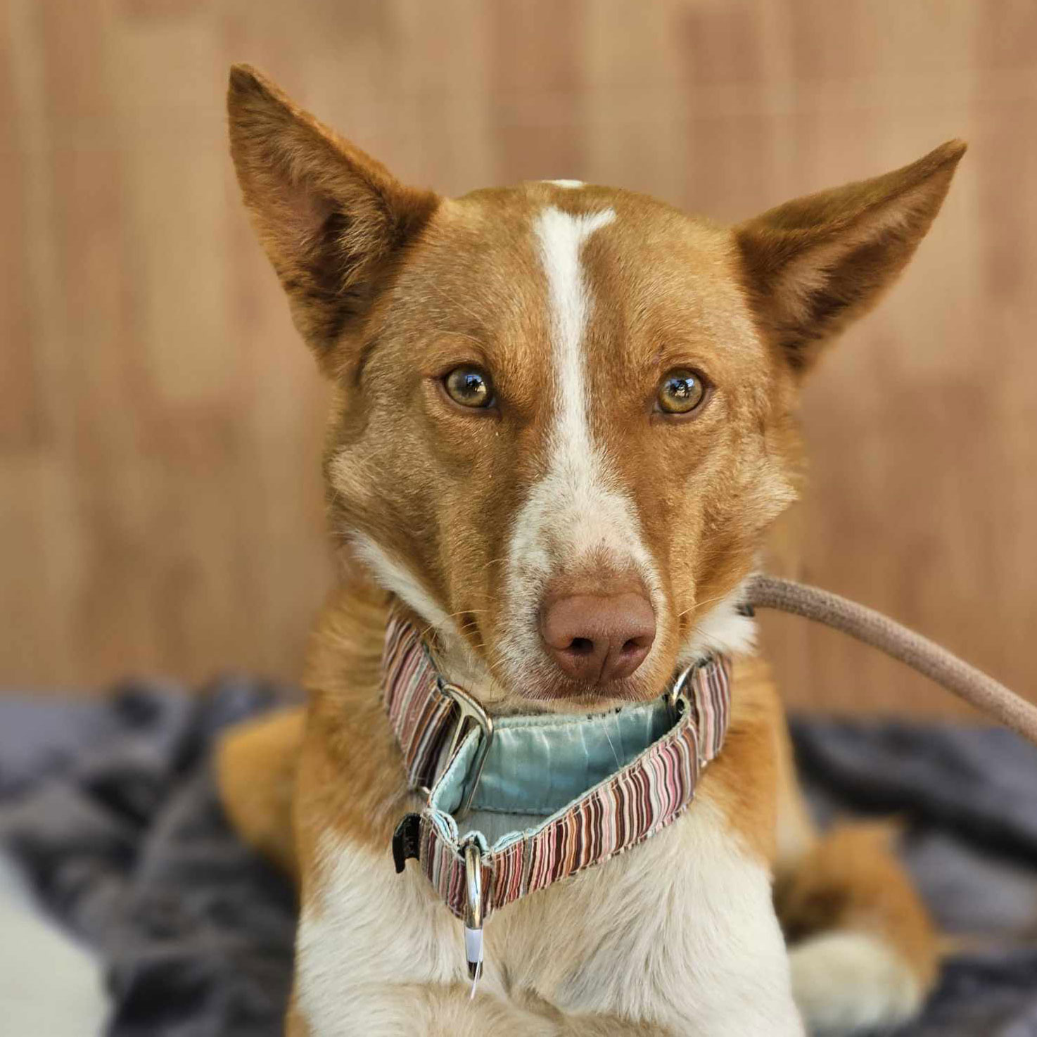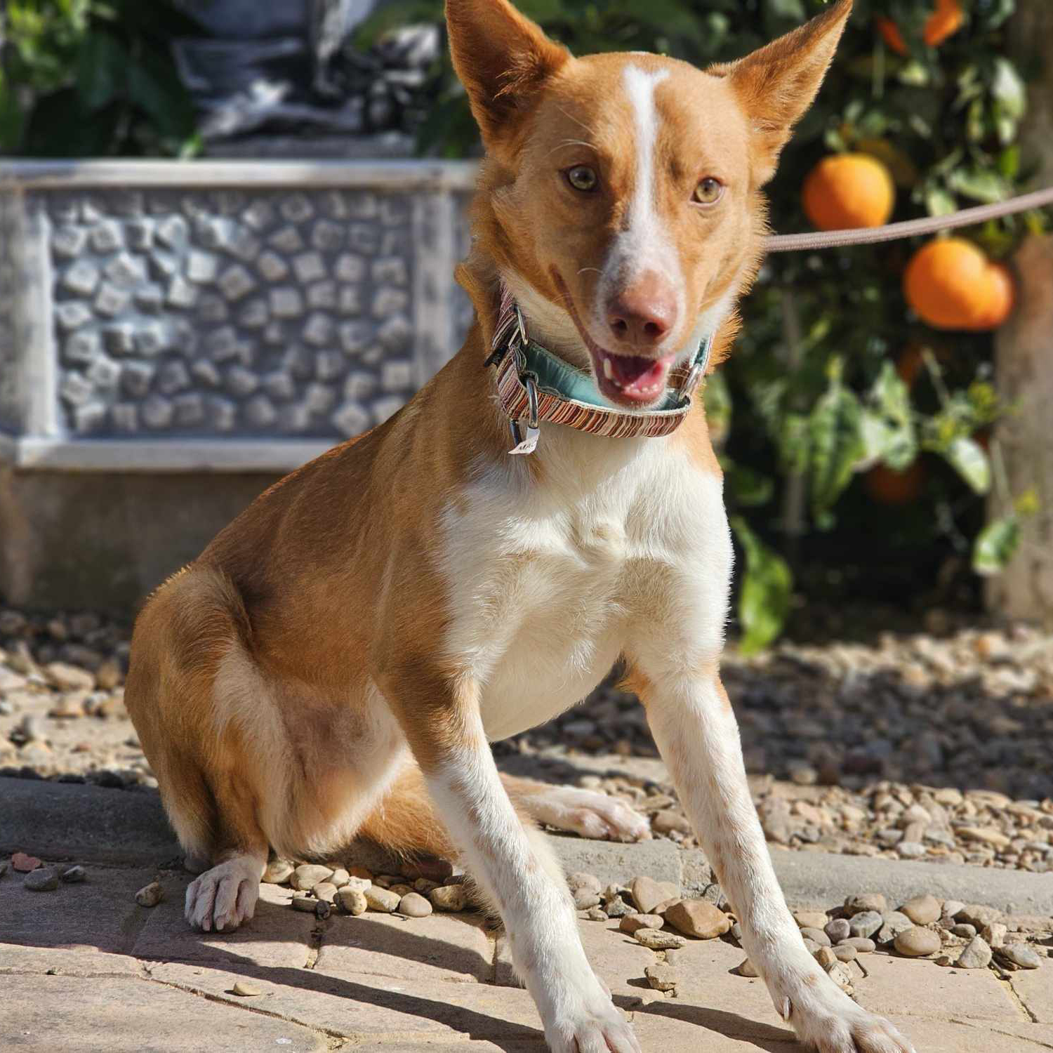 Estrella è una giovane Podenca trovata per strada, una cagnolina solare e piena di energia. Simpatica, vivace e molto socievole, adora giocare e stare in compagnia. Va d’accordo con tutti, cammina bene al guinzaglio e viaggia tranquilla in macchina.
