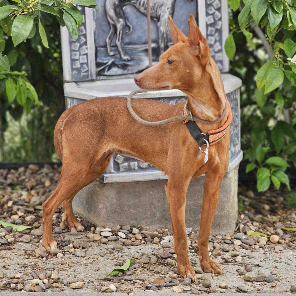 Harmony è una Podenca magica di taglia contenuta. È arrivata in rifugio un po’ spaventata, ma si è ambientata benissimo molto velocemente.