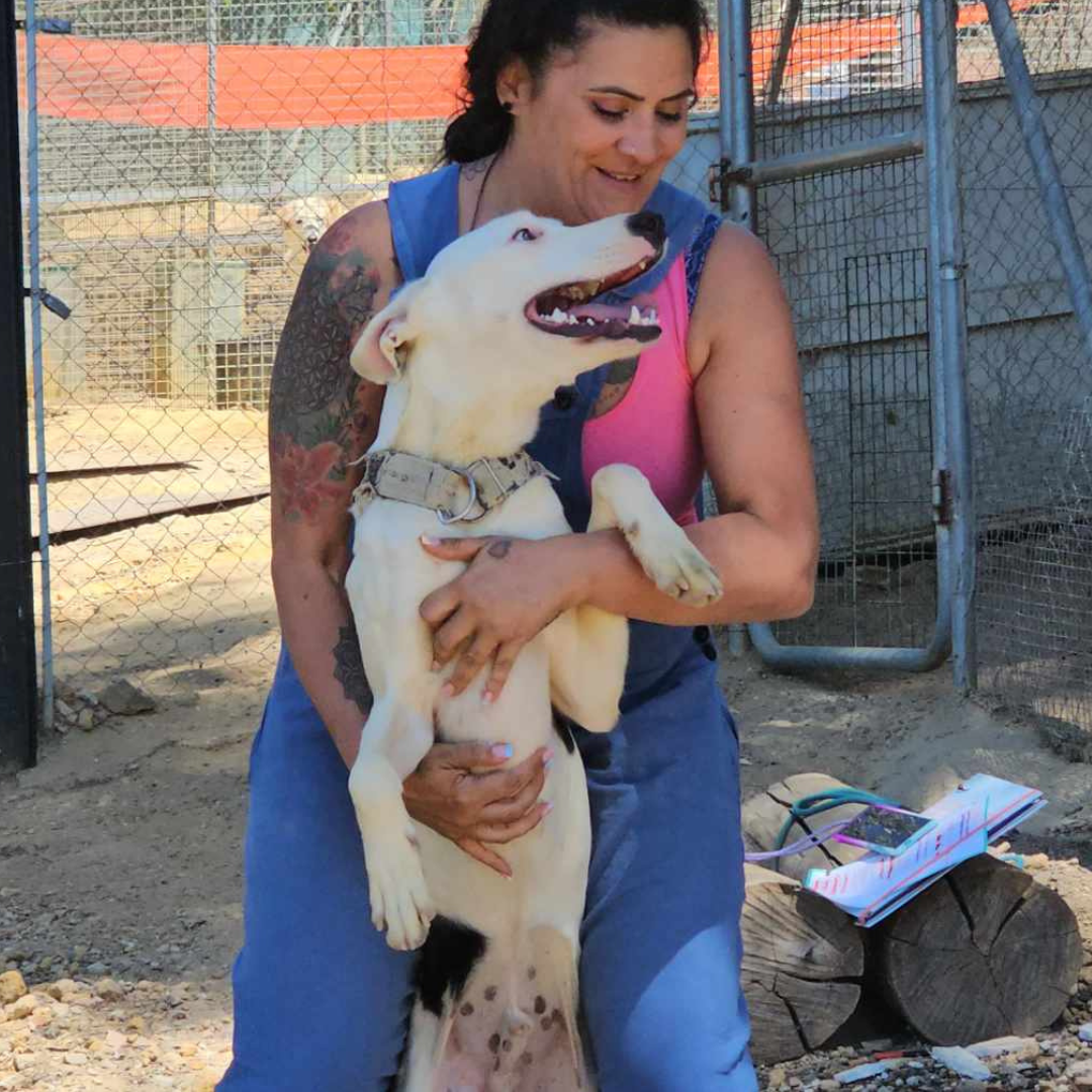 Hunter era tenuto prigioniero, terrorizzato da tutto e da tutti. Con tanto amore e pazienza Hunter ha di nuovo fiducia negli umani, ora adora uscire a passeggiare per esplorare il mondo. Scodinzola sempre quando vede qualcuno arrivare. È un Podenco amichevole che continua a imparare ogni giorno. In rifugio condivide la sua cuccia con una piccola femmina con cui ama giocare.