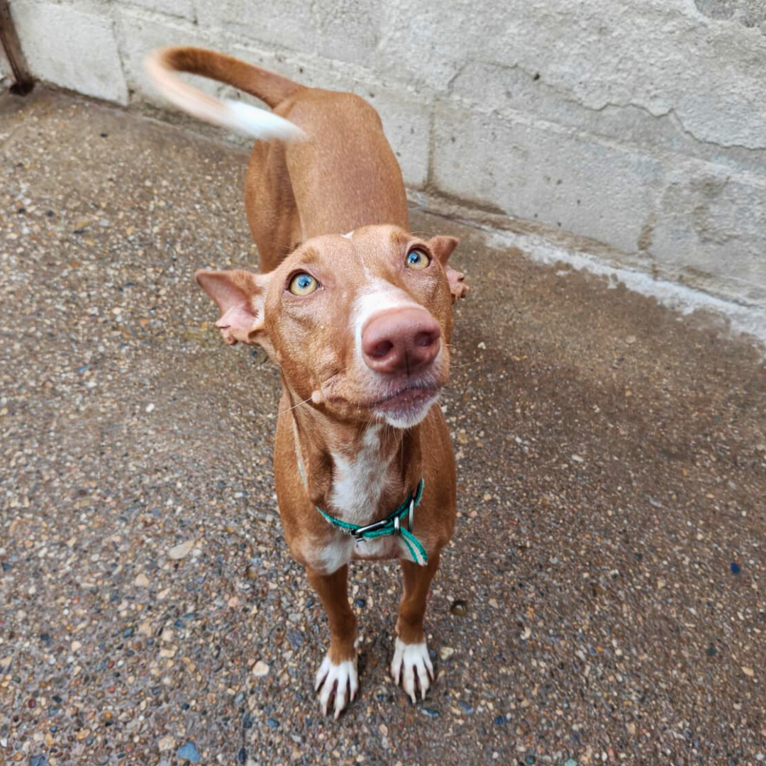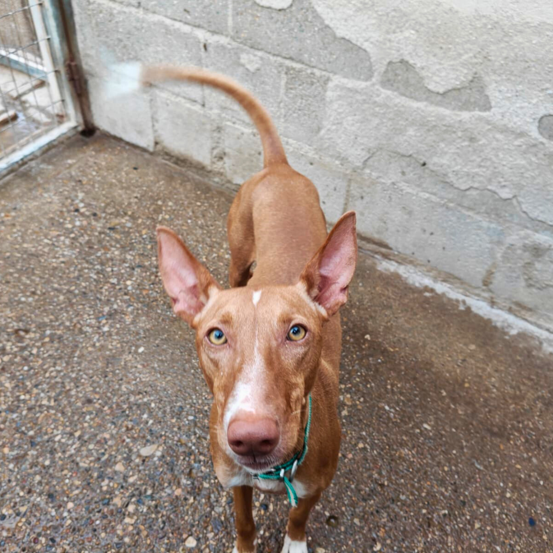 Tax è un giovane Podenco ceduto dal suo cacciatore perché non serviva per la caccia. È dolce, affettuoso e pieno di energia, sempre in cerca di compagnia e gioco. È sordo, ma questo non lo ferma: si adatta bene, va d’accordo con cani, gatti e bambini.