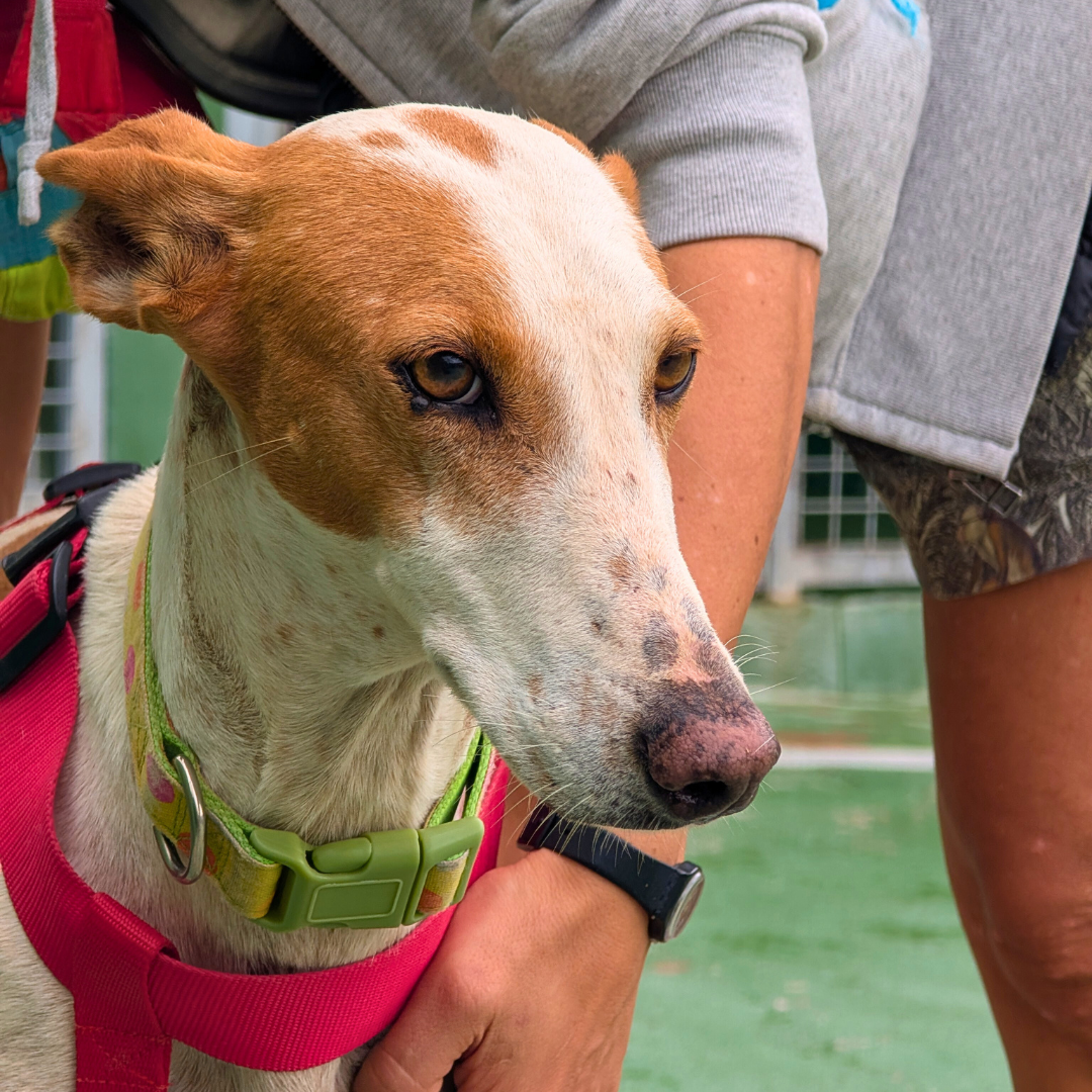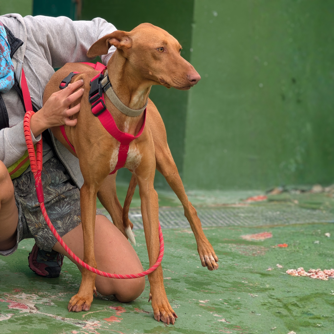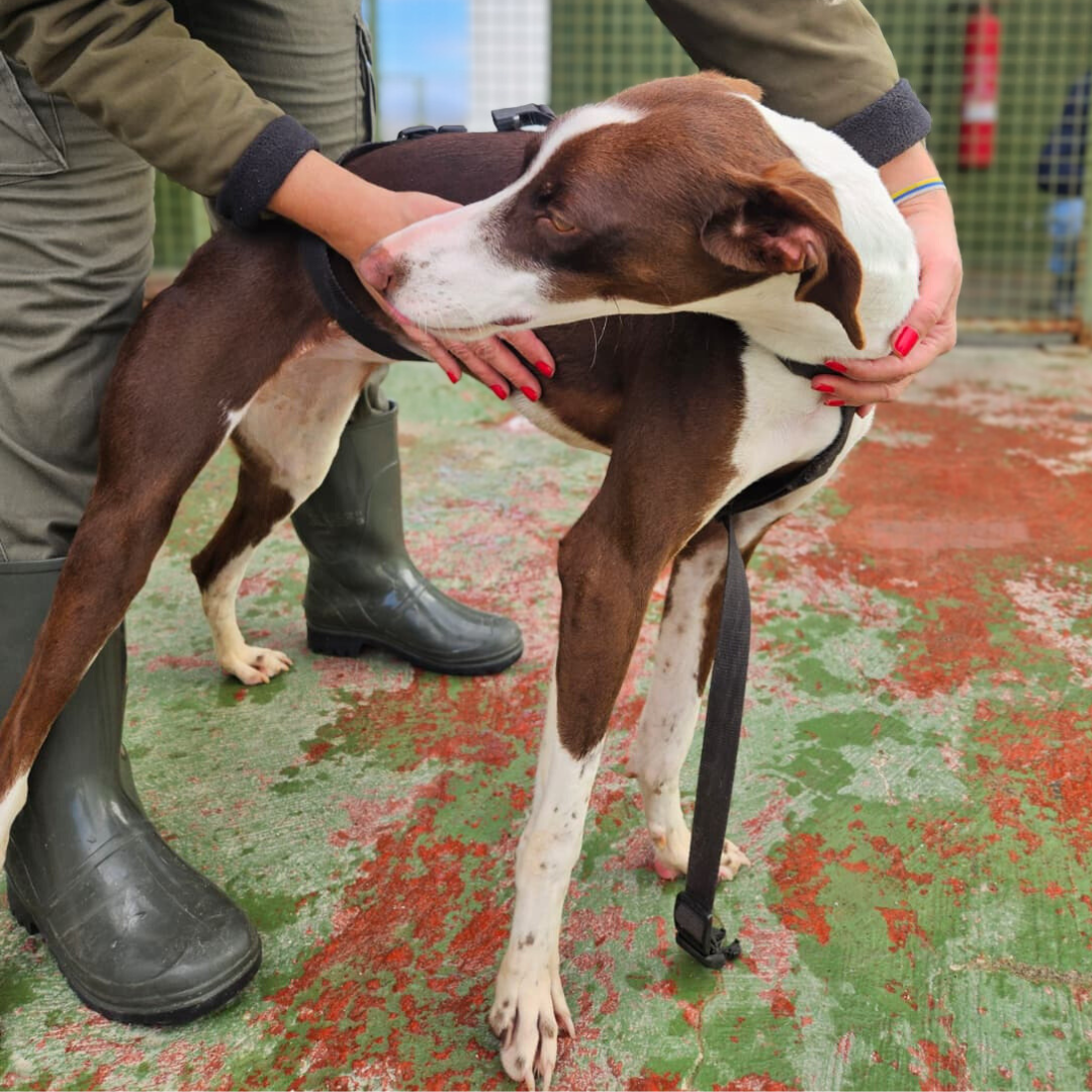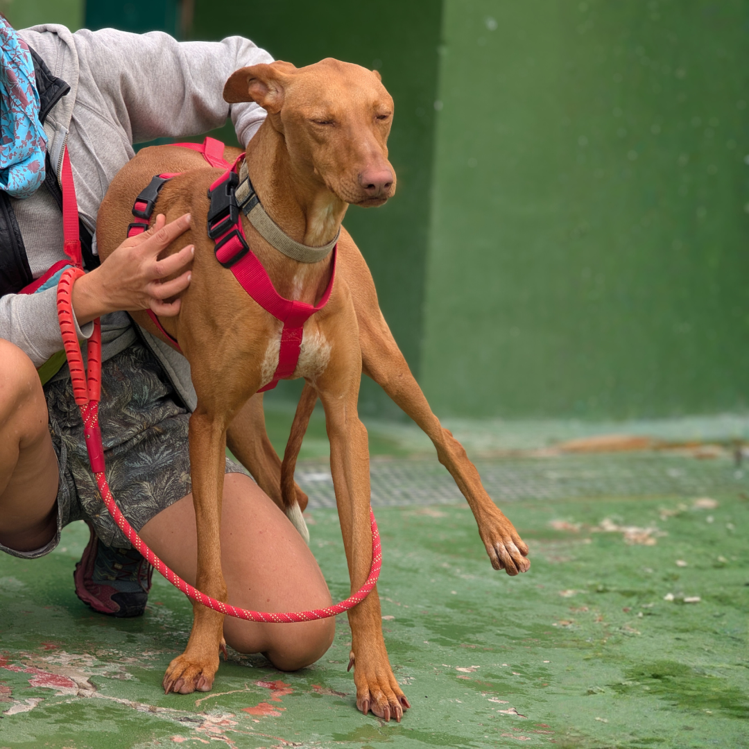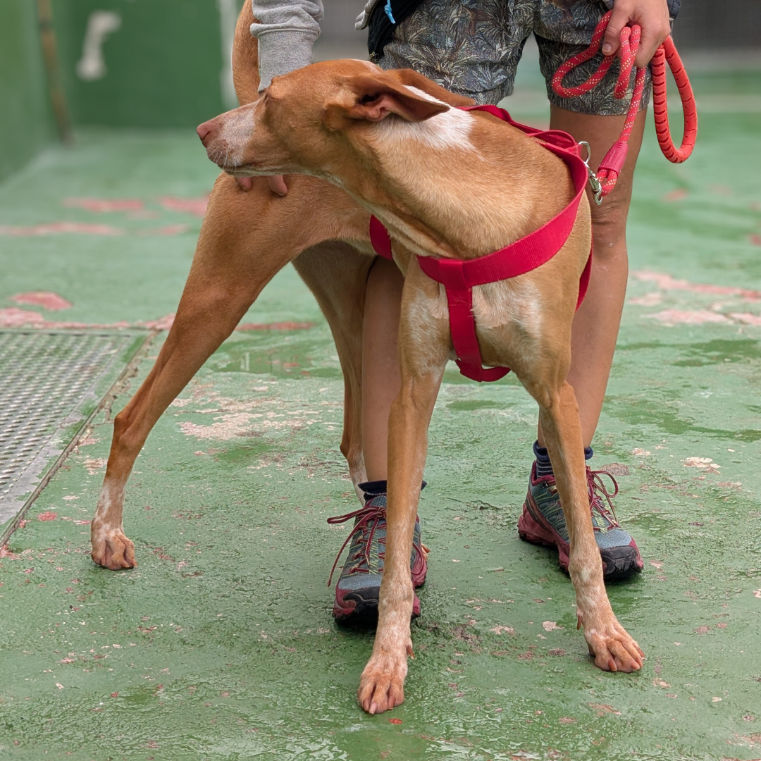 Quello della giovane Orilla non è stato un salvataggio semplice, lei era molto spaventata e non si lasciava avvicinare da nessuno. Arrivata in rifugio era molto timorosa, ma pian piano si è ambientata bene. È una Podenca simpatica, amichevole e affettuosa. Adora andare in passeggiata, tutto per lei è una magnifica scoperta! Alcune situazioni ancora la spaventano, cerchiamo per lei una persona che la scelga e facendole fare tante esperienze la aiuti a superare le sue insicurezze.