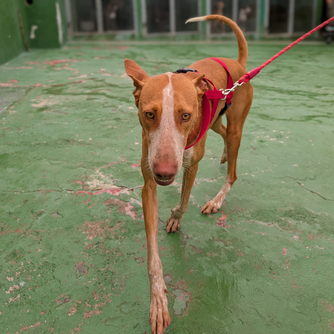 Ico è una podenca che si trova in un canile dove non è permesso ai volontari di portare i cani in passeggiata. Una volta alla settimana ha la possibilità di correre in un recinto più grande. E’ molto dolce ma anche timida, per lei cerchiamo chi sia disposto ad aiutarla a tornare a fidarsi dell’uomo.