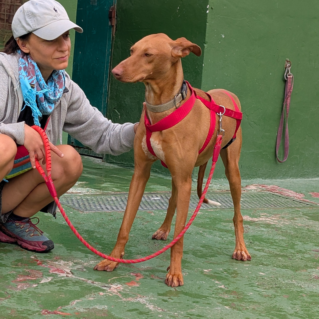 Le parole della volontaria che l’ha portata in passeggiata: “Mi hanno dato un podenca che sembrava avere paura di me, quindi ognuno di noi dalla propria parte con lo stesso guinzaglio, abbiamo camminato senza guardarci… e quale è stata la mia sorpresa, quando 5 minuti dopo ti sei avvicinata, cercando il contatto, mi guardavi con tenerezza… la posizione della tua codina cambiava e la mia mano ti accarezzava.”