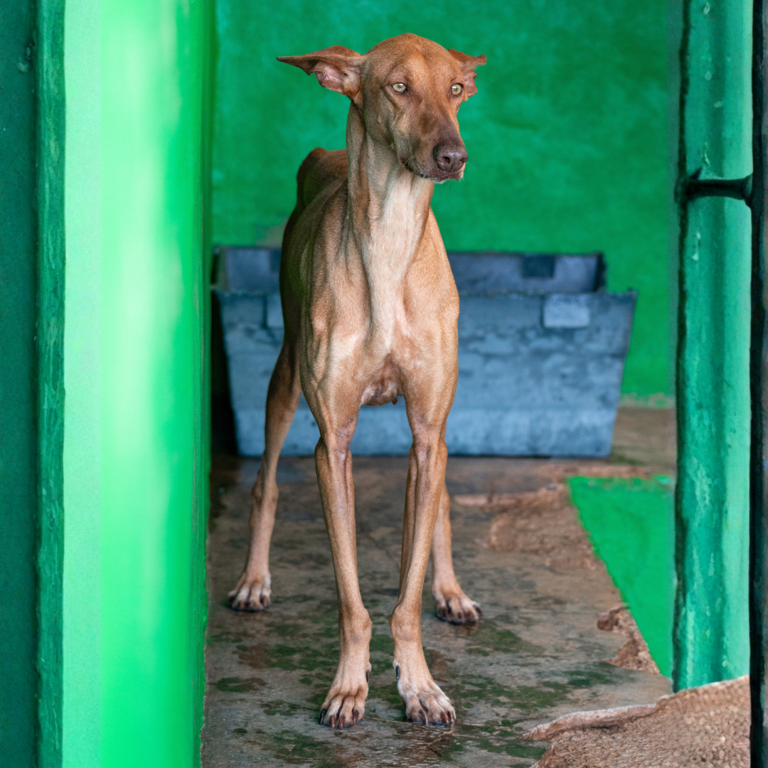 Vaquita è un Podenco meraviglioso che nella vita ha visto solo la gabbia di un canile. È arrivato nel canile bruttissimo dove vive da cucciolo, un canile dove i cani non escono mai dalla gabbia, neanche una volta al mese è concessa una passeggiata all’esterno. Ama le persone, è davvero un cane entusiasta che stravede per le coccole, quando siamo andati a visitarlo per fargli qualche foto era emozionatissimo di essere li con noi, nel cortiletto davanti al canile. Un cane meraviglioso di taglia grande dal cuore buono, dimenticato per sempre nella gabbia di un canile orribile.