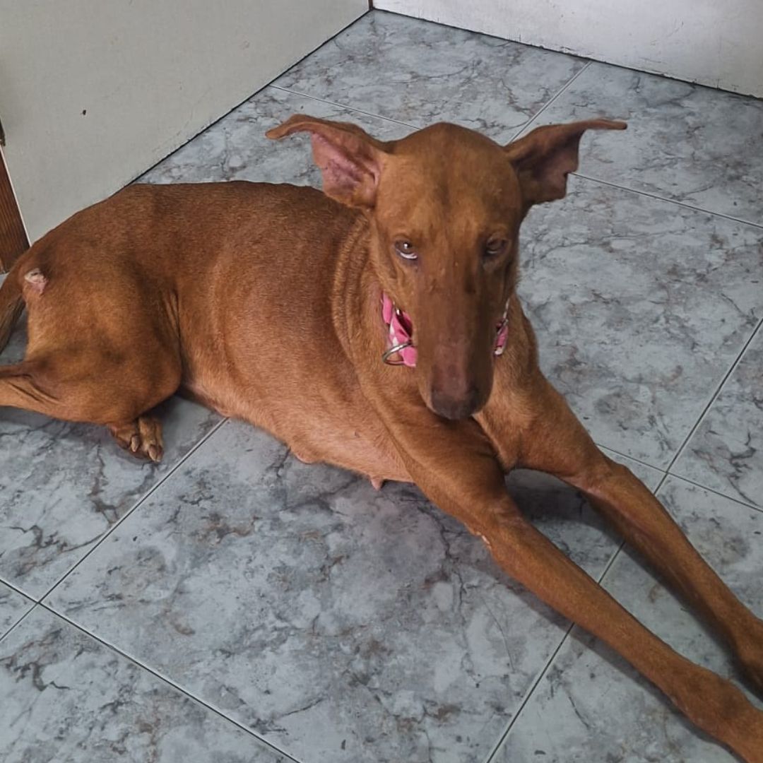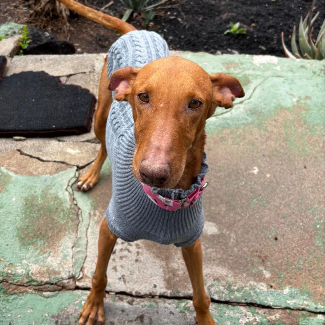 Lei è una Podenca tranquilla che cerca l’amore di qualcuno che la protegga per sempre.