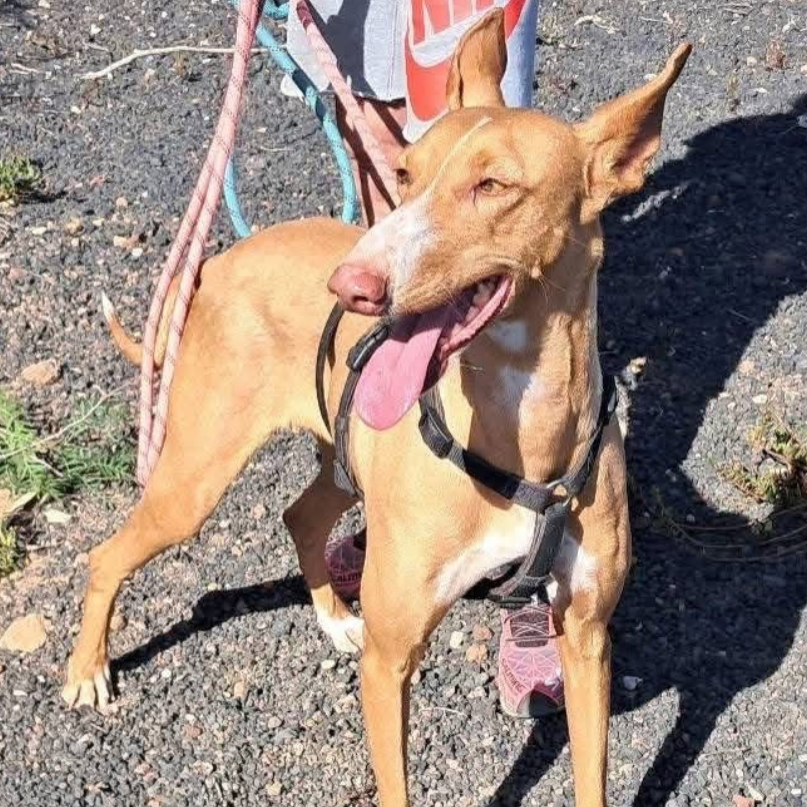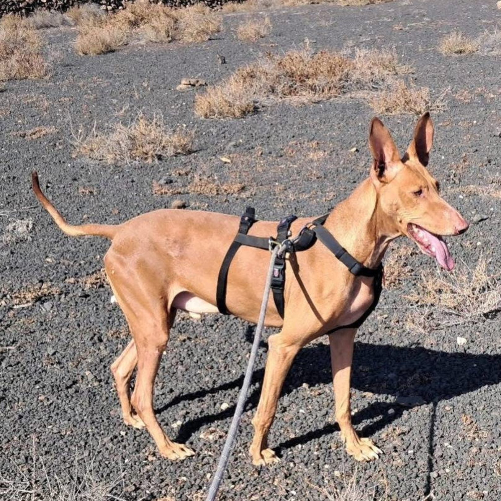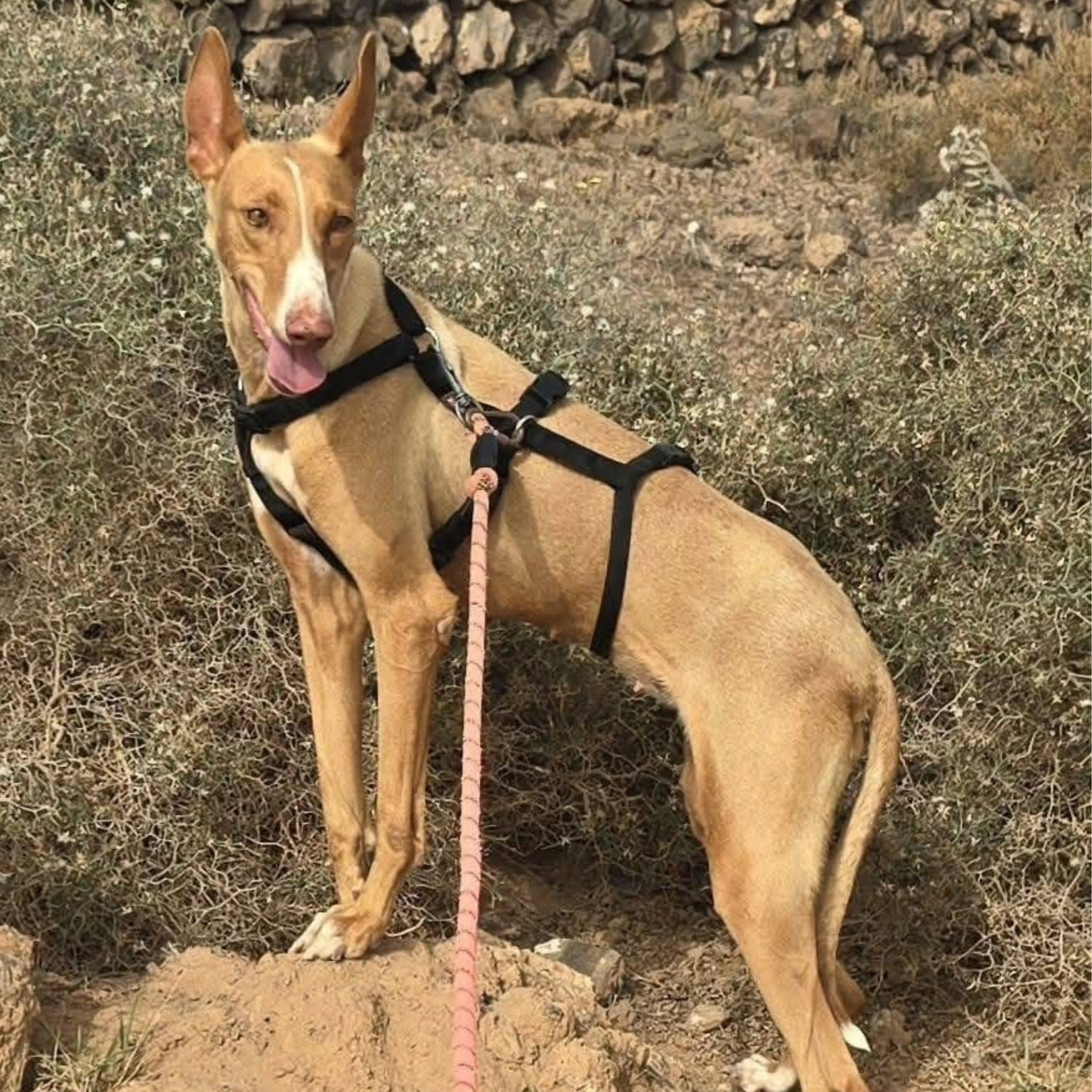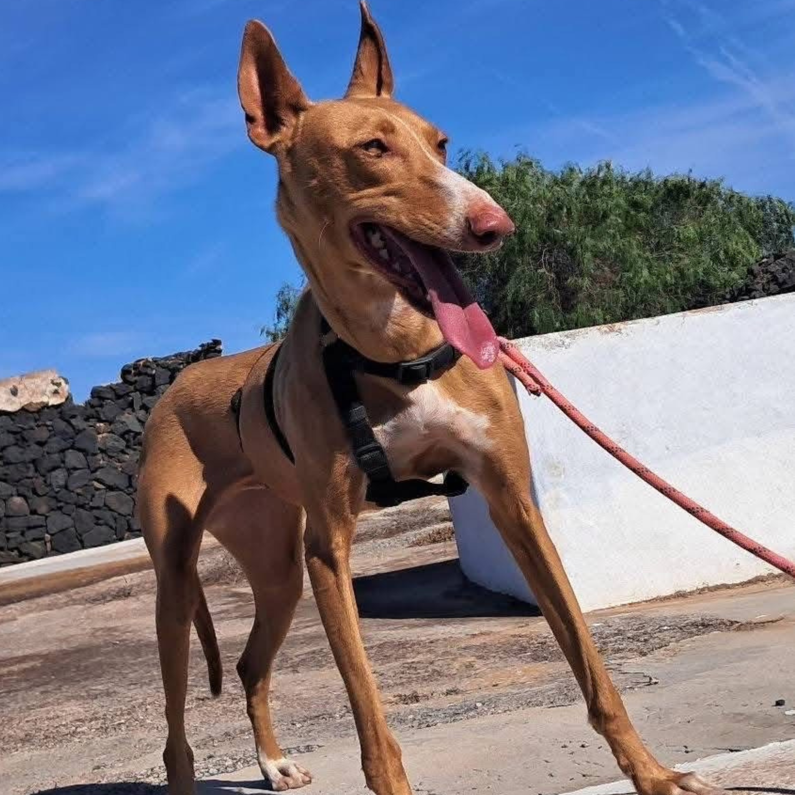 Faneke è stato abbandonato durante la stagione della caccia a Lanzarote e trovato a vagare nelle montagne. Faneke è un Podenco stupendo, equilibrato, pieno di energia e di voglia di vivere. E’ buono, allegro e socievole con tutti i cani sia maschi che femmine. Molto affettuoso con le persone e bravo in passeggiata. Un Podenco magnifico e dal carattere meraviglioso!
